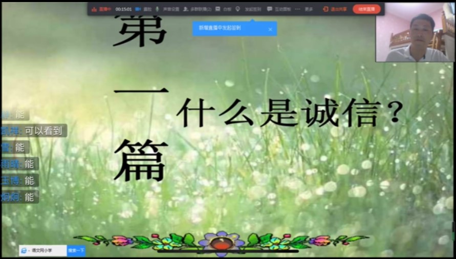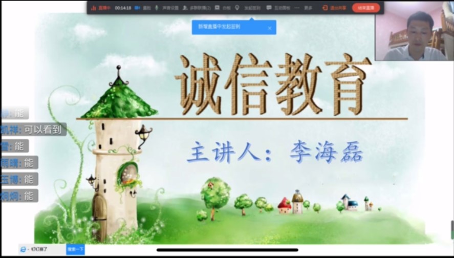 2020615日下午,体育学院利用钉钉办公软件开展了关于诚信教育的主题班会。班会由李海磊老师主持,体育学院全体同学参与。